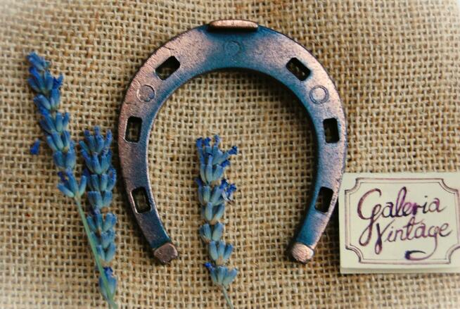 Miedziana, dekoracyjna podkówka na szczęście. Podkowa jest w całości wykonana z miedzi, pokryta miejscami ciemniejszą ...