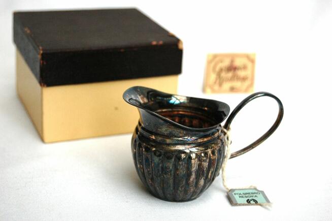 Piękny, platerowany srebrem mlecznik - Polsrebro Resovia, z okresu PRL. Wzornictwo klasyczne. Srebrzona powierzchnia jest ...
